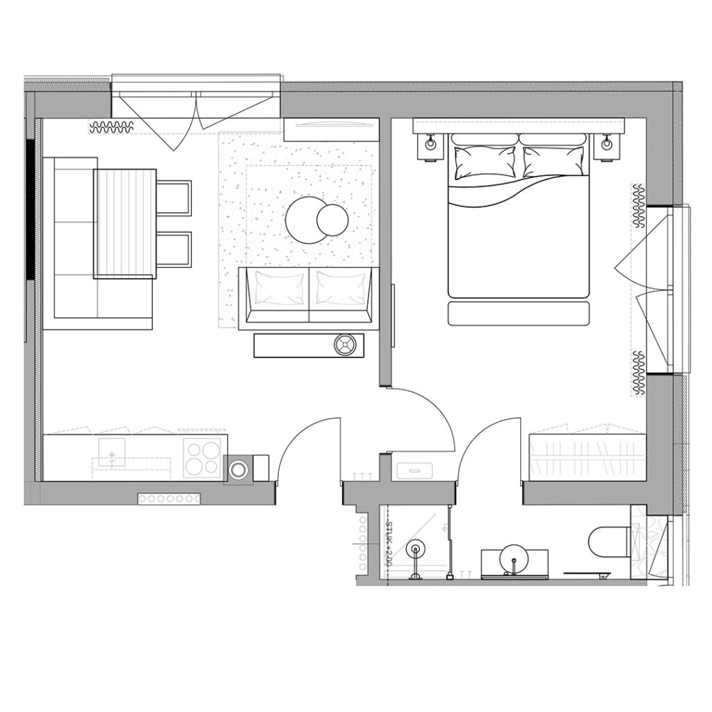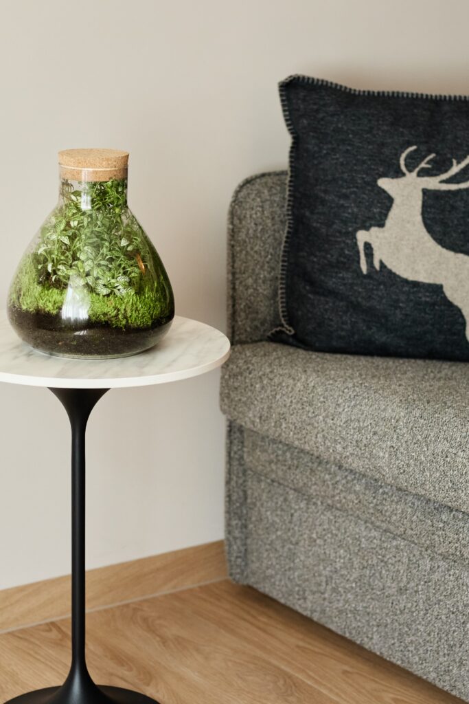 In de woonkamer is een slaapbank aanwezig, die eenvoudig kan worden omgebouwd tot een extra bed voor twee personen, waarnoor het appartement ideaal is voor een gezin of een stel vrienden.